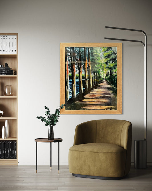 Stretched Satin Canvas Print - Serene Forest Path Artwork